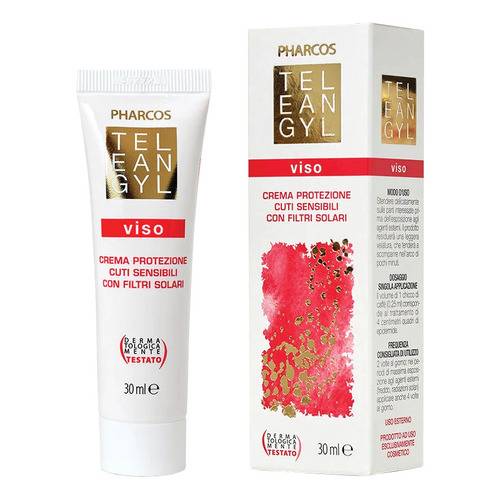 TeleangylVISO Descrizione Emulsione protettiva con filtri solari (UVA, UVB e IR) sia di tipo fisico (riflettenti) che chimico, con estratti di malva, ippocastano e altre sostanze ad azione filmante ed emolliente. La presenza di pigmenti inorganici (del colore della pelle) contribuisce a coprire leggermente eventuali inestetismi. Dermatologicamente testato. Modalità d'uso Stendere delicatamente sulle parti interessate prima dell'esposizione agli agenti esterni. Il prodotto residuerà una leggera velatura, che tenderà a scomparire nell'arco di pochi minuti. 2 volte al giorno, nei periodi di massima esposizione agli agenti estern...