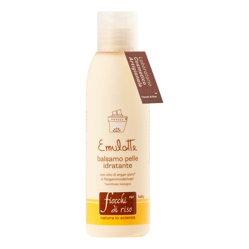 fiocchi di riso EmulatteDescrizione Balsamo pelle idratante. Efficace per idratare, nutrire e detergere la pelle della mamma e del bambino. Indicato anche per pelli sensibili e facilmente arrossabili. Con olio di argan puro certificato biologico, fitogemmoderivati ad azione lenitiva, olio di oliva biologico e olio di riso la sua formulazione è arricchita dalle proteine idrolizzate di riso ad attività emolliente e rinfrescante. Senza paraffina, senza coloranti, senza profumi sintetici. Modalità d'uso Come balsamo pelle: applicare sulla cute e massaggiare fino a completo assorbimento. Come detergente: applicare sulla cute co...