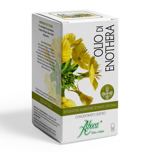 OLIO di ENOTHERA CONCENTRATO OLEOSODescrizione Integratore alimentare utile per il fisiologico benessere della pelle, coadiuvante dei disturbi del ciclo mestruale. Ingredienti Enothera ( Oenothera biennis) semi olio, gelatina. Caratteristiche nutrizionali Ingredienti per dose giornaliera consigliata 4 opercoli Enothera semi olio titolato in acido gamma linolenico (GLA) 9% (Metodo GC) 2,05 g 185 mg Modalità d'uso Si consiglia di assumere 2 opercoli per due volte al giorno. Avvertenze Per donne in gravidanza o in allattamento si raccomanda di sentire il parere del medico. Non superare la dose giornaliera raccomandata. ...